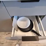 - ❓Une cuisine est-elle disponible à l'appartement pour les clients ?Oui, l'appartement est équipé d'une cuisine équipée et propose également une cafétière/théière électrique, un réfrigérateur et de la verrerie.